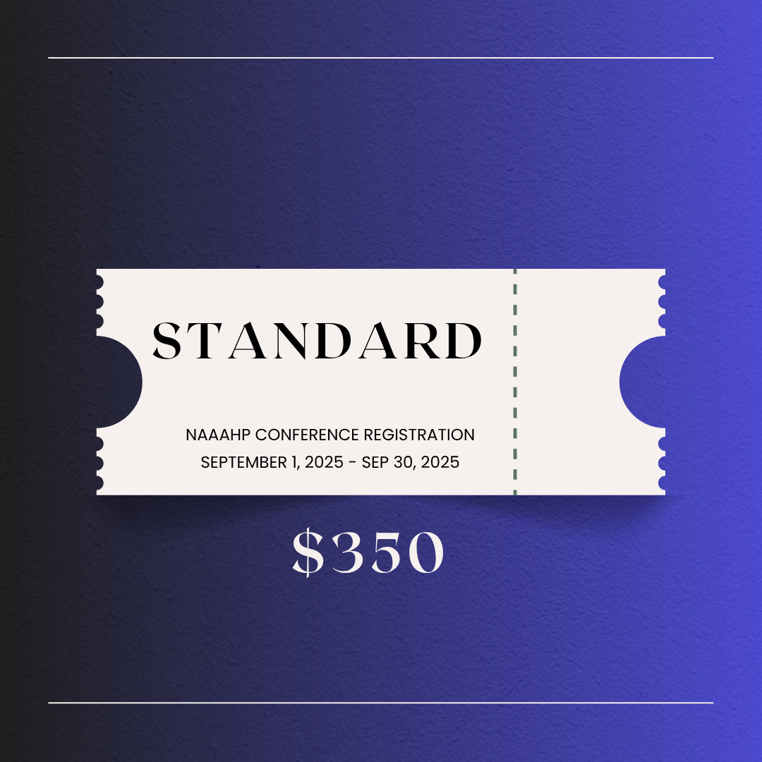 NAAAHP 2025 Conference - Regular Special: Get 11 Student Tickets for the Price of 10 NAAAHP 2025 - Alumni Access NAAAHP 2025 Conference - VENDOR BOOTH - Graduate School & Vendor Fair Saturday, Nov 8th NAAAHP Conference 2025 - LAST CHANCE NAAAHP 2025 Conference - REGULAR Sponsorship Membership